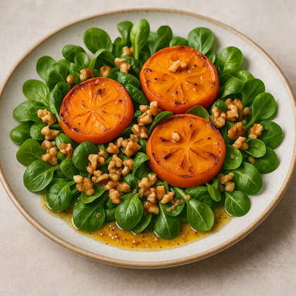 Rezept Feldsalat mit gebackener Kaki als PDF-Datei